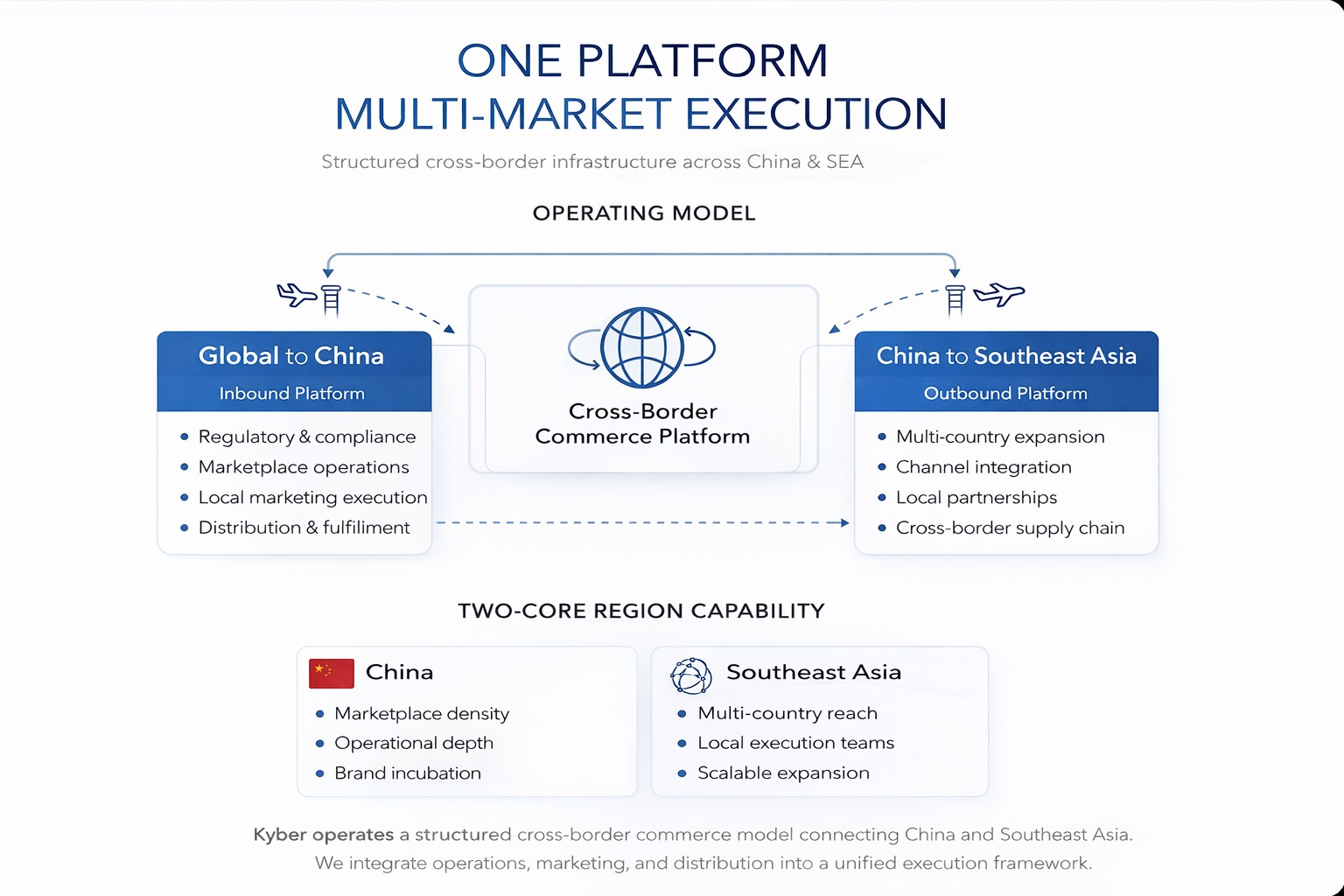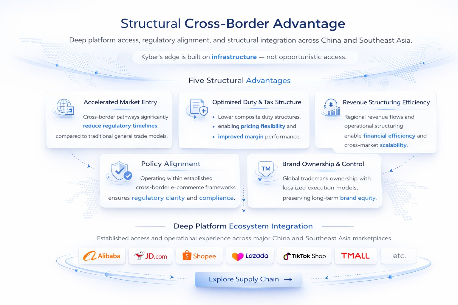 Kyber is a cross-border commerce platform integrating operations, supply chain, and technology across China and Southeast Asia.